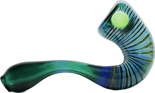 Lake Green and Silver Fumed Glass Sherlock Pipe